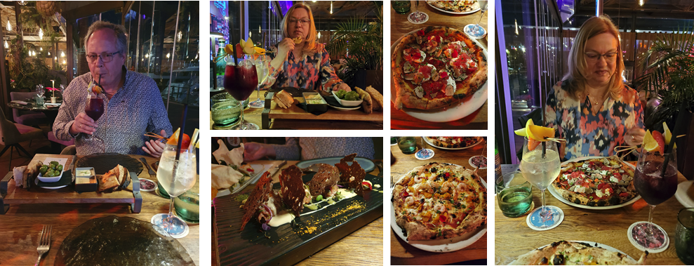 Die Vorspeise Sashimi de Lubina Flambeada, Flambiertes Wolfsbarsch-Sashimi mit Daikon-Gurkensalat, Ingwer, und Tamarinden-Dressing für 29 € und eine Pizza Atun Rójo für 36 € mit Tomate, Büffelstracciatella, rotem Thunfisch-Tartar aus Almadraba und frischem schwarzen Trüffel ist mal was anderes. Hansgeorgs Pizza Mare und als Vorspeise Steak tartar de ternera, Rinder-Tatar auf einem Olivenextrakt mit knusprigem Johannisbrot waren auch eine Geschmacksexplision. Dazu eine leckere Sangria und der Abend war perfekt.